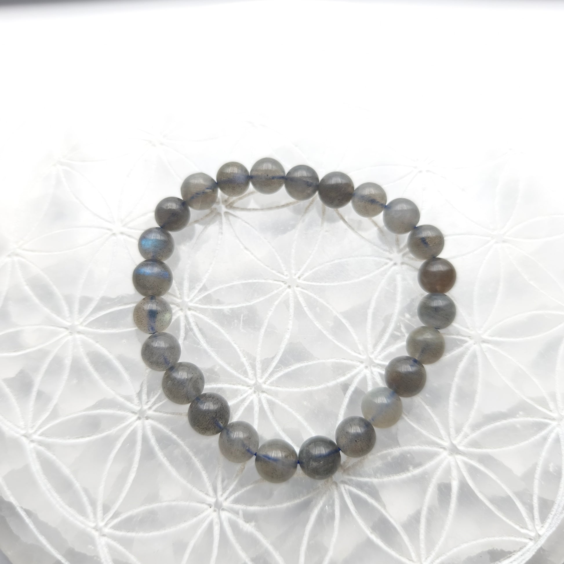 Chaque bracelet présente des variations naturelles liées à la labradorite, notamment dans l’intensité des reflets et des nuances grises. Ces différences visuelles rendent chaque modèle unique tout en conservant l’apparence globale propre à cette pierre.