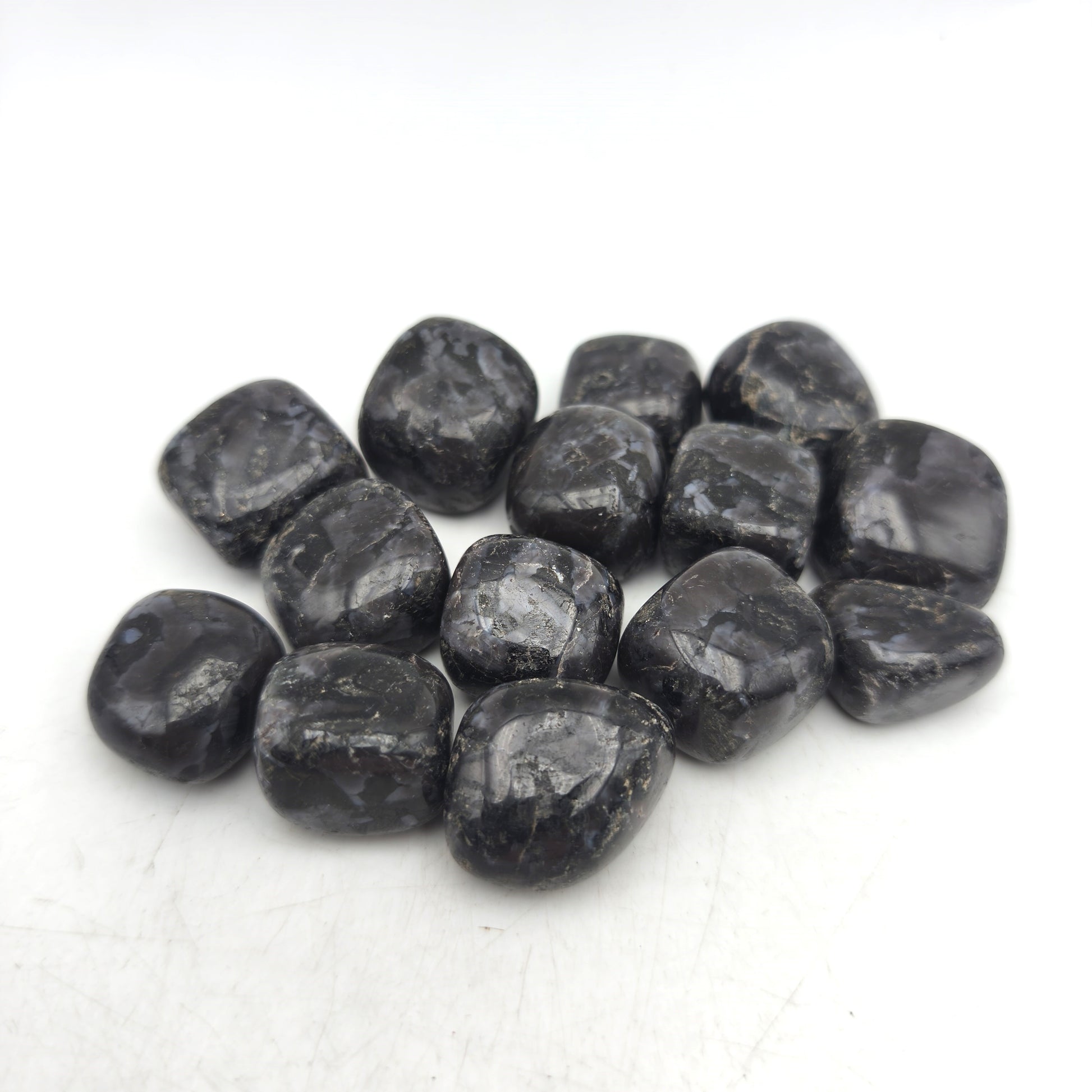 Ces pierres roulées en gabbro présentent une finition polie et lisse qui met en valeur leurs nuances sombres, typiquement composées de gris et de noir ponctués de zones plus claires. Leur forme arrondie, obtenue par roulage, offre des pièces agréables à manipuler et visuellement harmonieuses. Les motifs naturels, souvent mouchetés ou légèrement marbrés, varient d’une pierre à l’autre, reflétant la structure interne caractéristique du gabbro. Opaques et d’aspect dense, ces pierres conservent un rendu naturel tout en bénéficiant d’un travail de surface soigné.