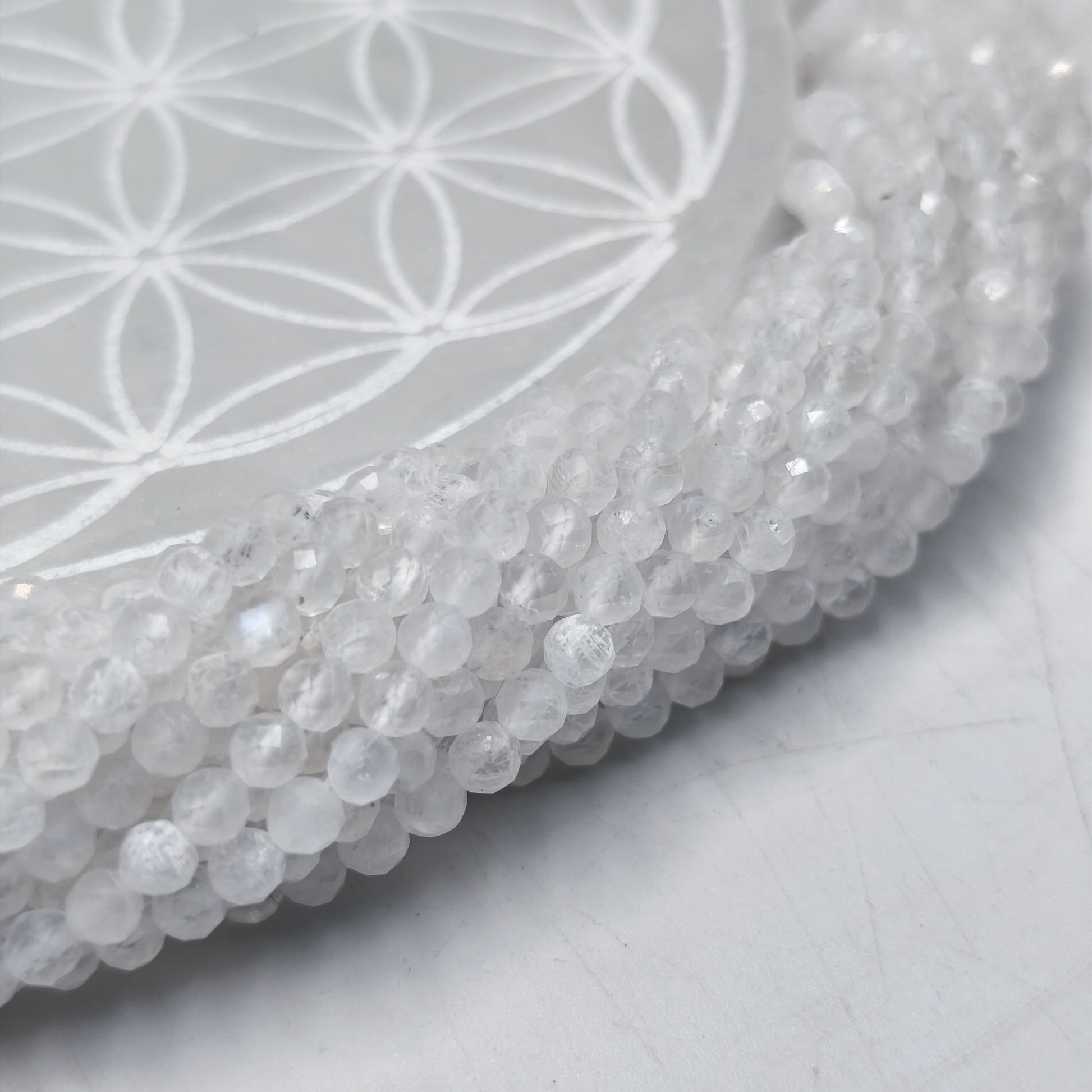 Ce rang de pierre de lune blanche facettée 4 mm est particulièrement adapté aux ateliers de bijouterie et aux créateurs souhaitant réaliser des bracelets fins, colliers délicats, boucles d’oreilles ou compositions joaillières élégantes. Son format discret permet une intégration facile dans des designs minimalistes ou des créations associant plusieurs pierres naturelles.