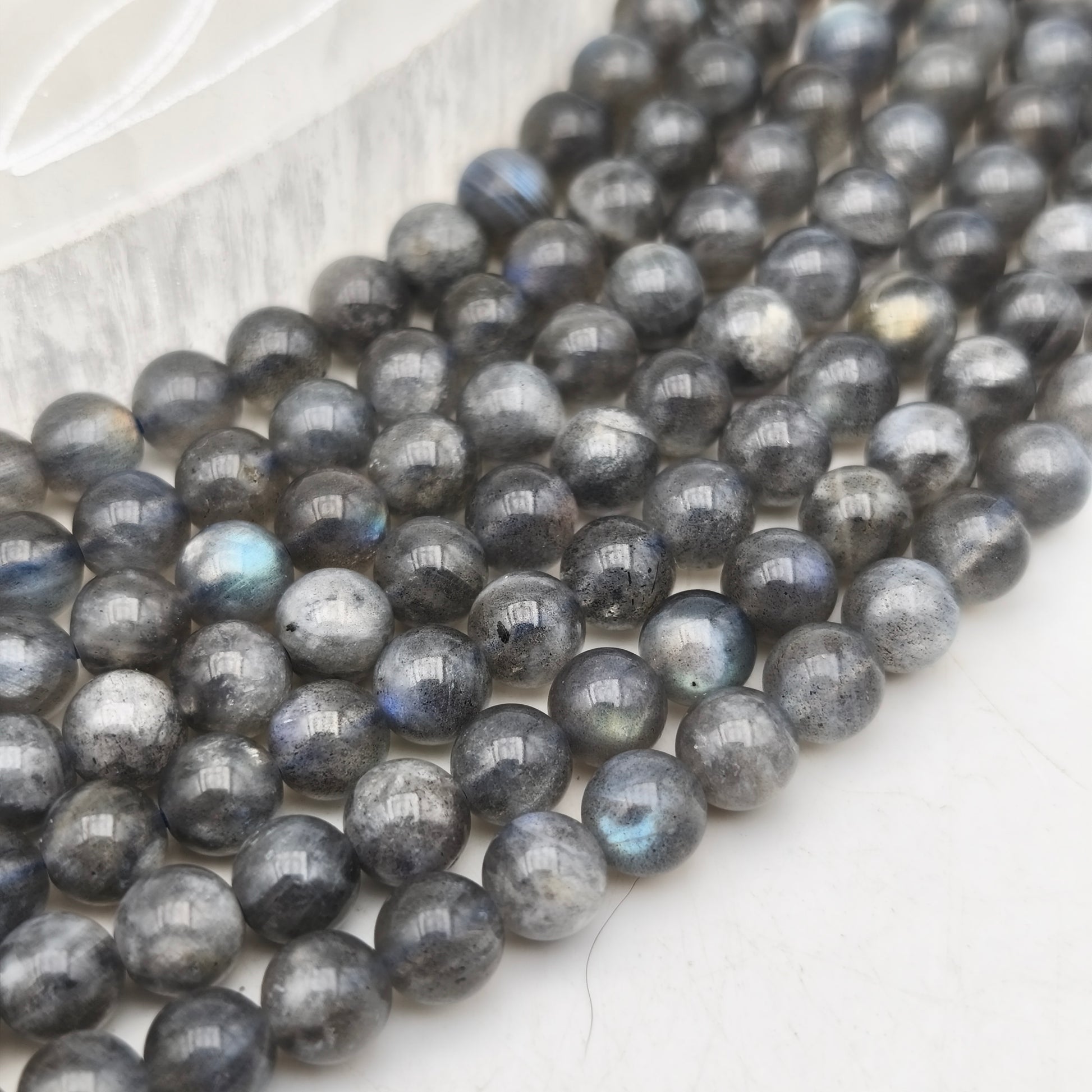 Ce rang de perles en labradorite de qualité Extra est composé de perles rondes de 6 mm soigneusement sélectionnées pour la richesse de leurs nuances et de leurs reflets. Les perles polies présentent des tonalités grises variées, animées de labradorescences bleutées ou verdâtres typiques de cette pierre. Chaque perle révèle des motifs naturels distincts, conférant au rang une esthétique authentique et harmonieuse. L'ensemble offre une base idéale pour la création de bijoux grâce à la régularité des perles et à la qualité visuelle du minéral.